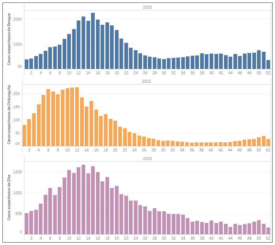 Datos actualizados a la semana epidemiológica 52 del 2023 para dengue, chikunguña y Zika.