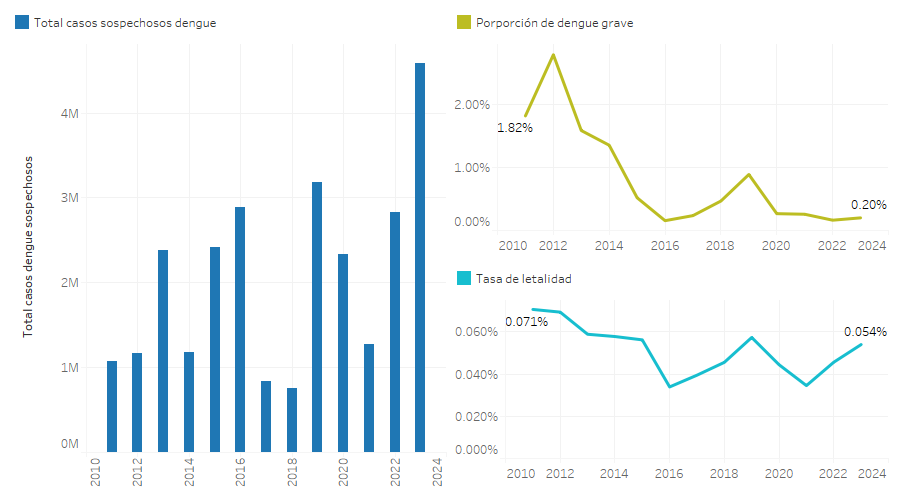 proporción de casos de dengue grave y tendencias de la tasa de letalidad por dengue.