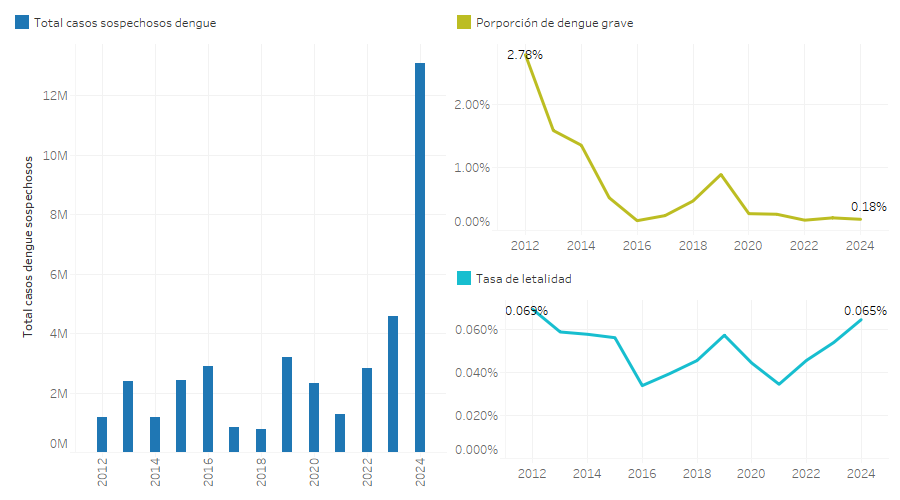 proporción de casos de dengue grave y tendencias de la tasa de letalidad por dengue.